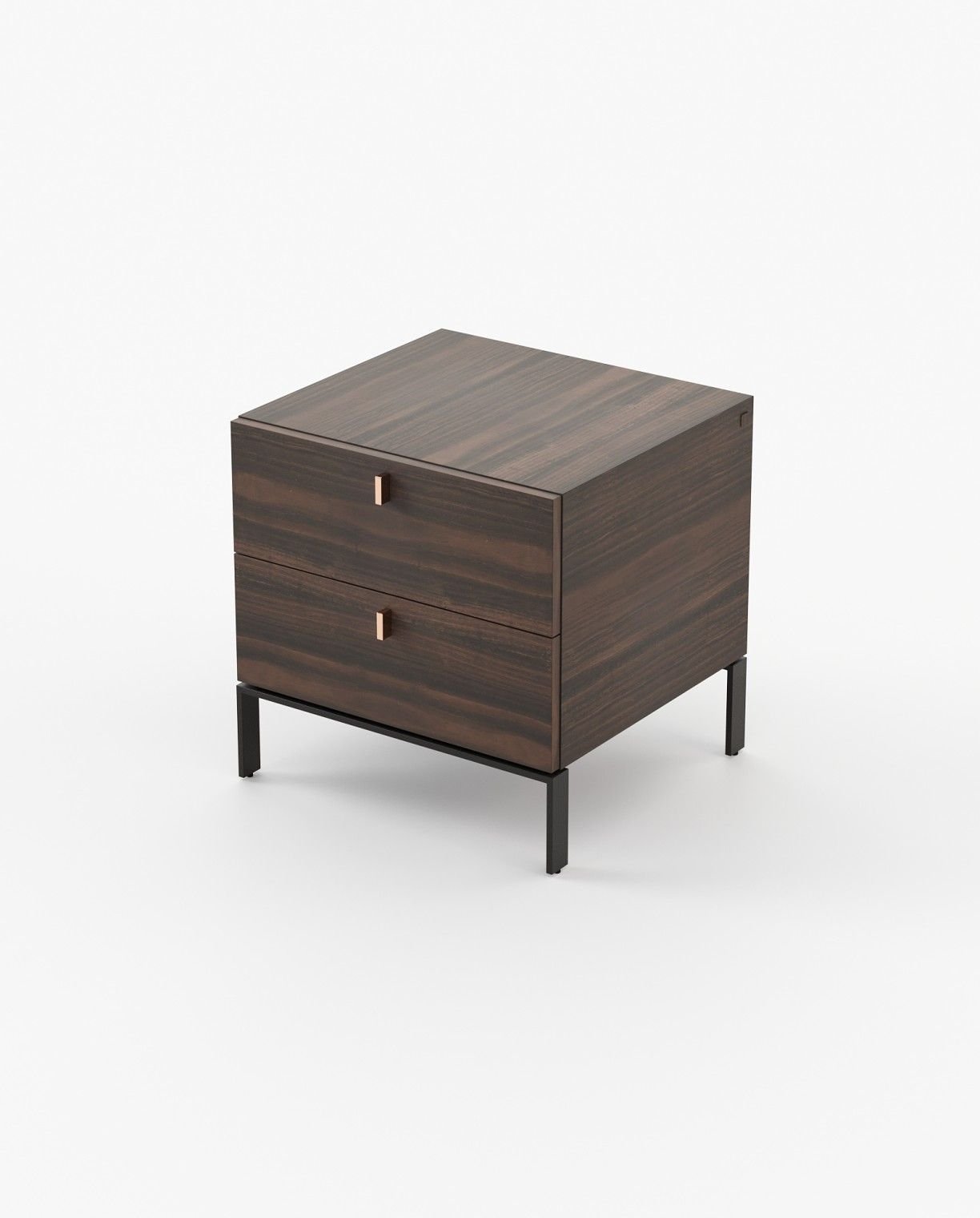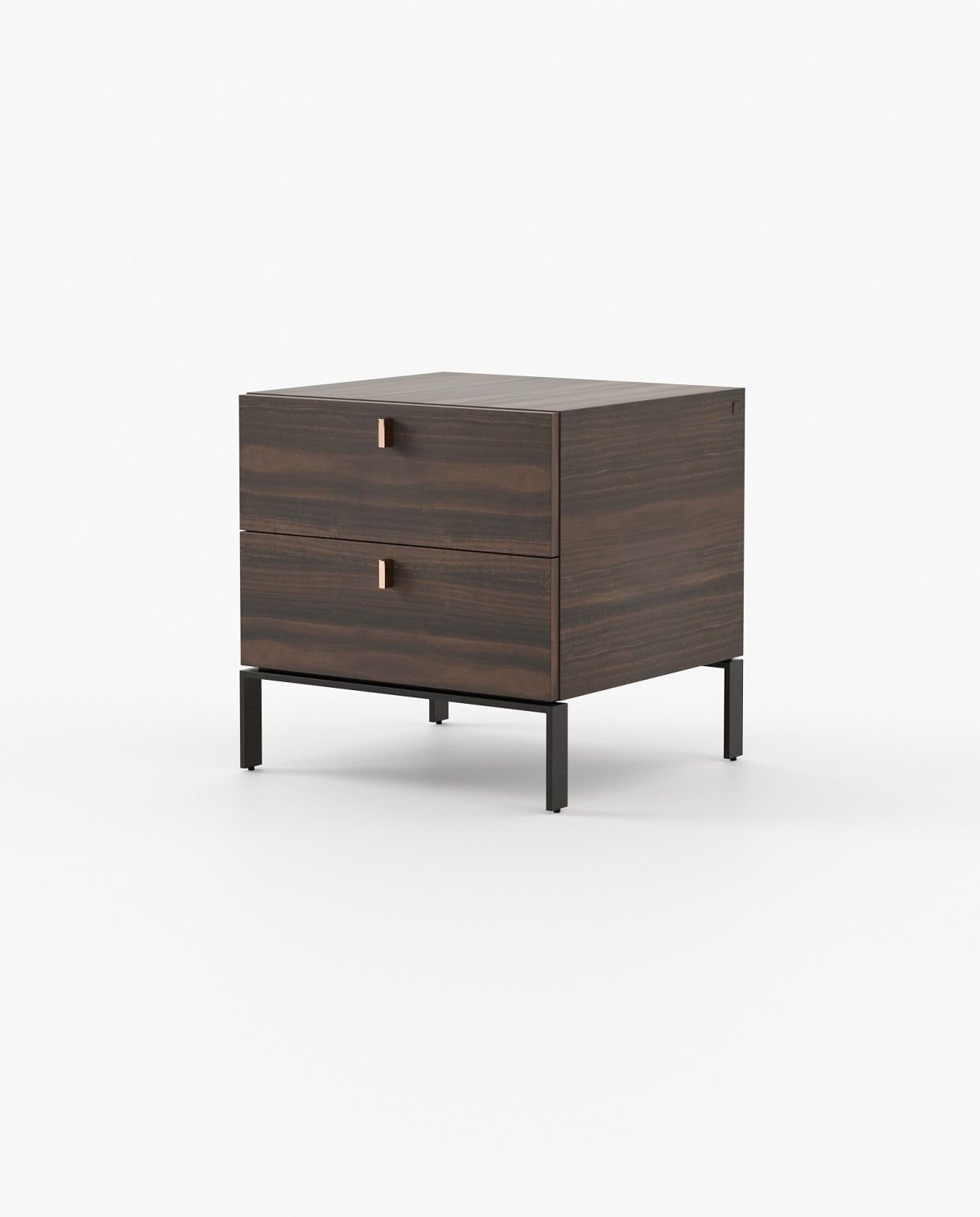 Amber is a sleek bedside table with legs that brings style and ample storage to any bedroom. Its clean-cut silhouette pairs perfectly with modern decor, making it an ideal choice for designers seeking a blend of functionality and contemporary elegance.
