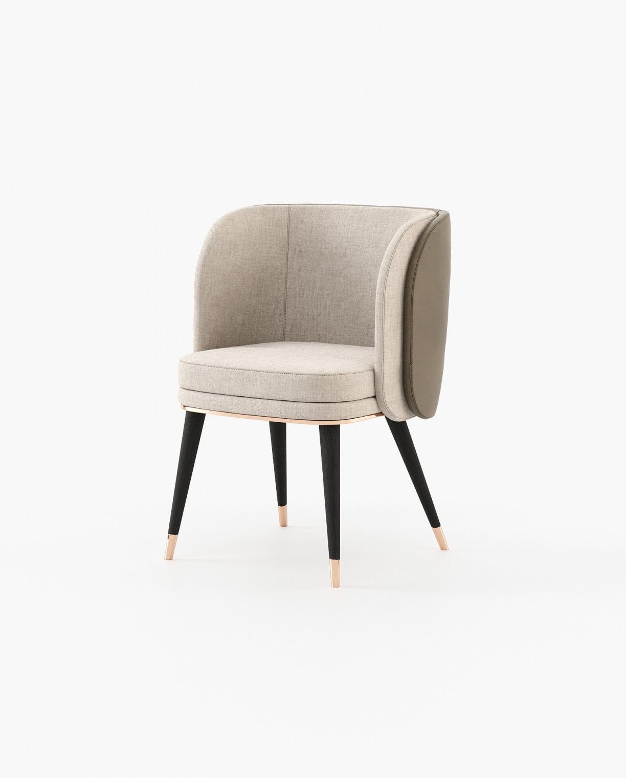 The Ambrose is an ergonomic dining chair featuring a sleek convex back supported by an upholstered frame with a comfortable seat. Developed with style and comfort in mind, it is perfect for creating inviting dining spaces where both aesthetics and functionality are paramount.