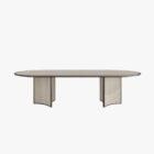The Aura dining table is the definition of elegant simplicity. Supported by two concave legs with antique brass and solid wood details, this dining table is a timeless piece. Available with a wood veneer, lacquered or natural stone top. Its refined design blends perfectly into any setting, offering both sophistication and versatility.