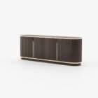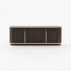 Brown is a sophisticated curved sideboard with a wooden surface, detailed metallic trims and a handmade marble top. Ideal for standout dining rooms, this meticulously crafted piece offers a contemporary look that will enhance any interior with its refined elegance.