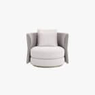 The CLEO armchair offers the same sleek, sculpted profile as the modular CLEO sofa, bringing a contemporary and versatile charm to any space. This armchair is fully customizable with a wide selection of fabrics, allowing it to blend seamlessly with different interiors. Its well-defined lines and luxurious upholstery provide both style and comfort, making it a refined choice for modern living areas.