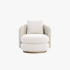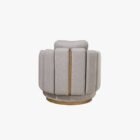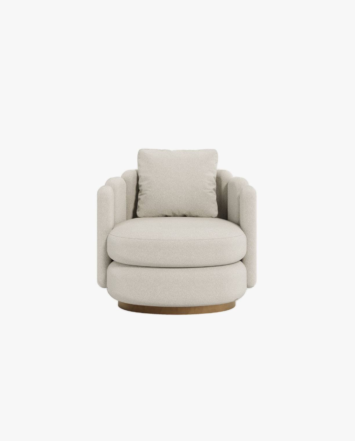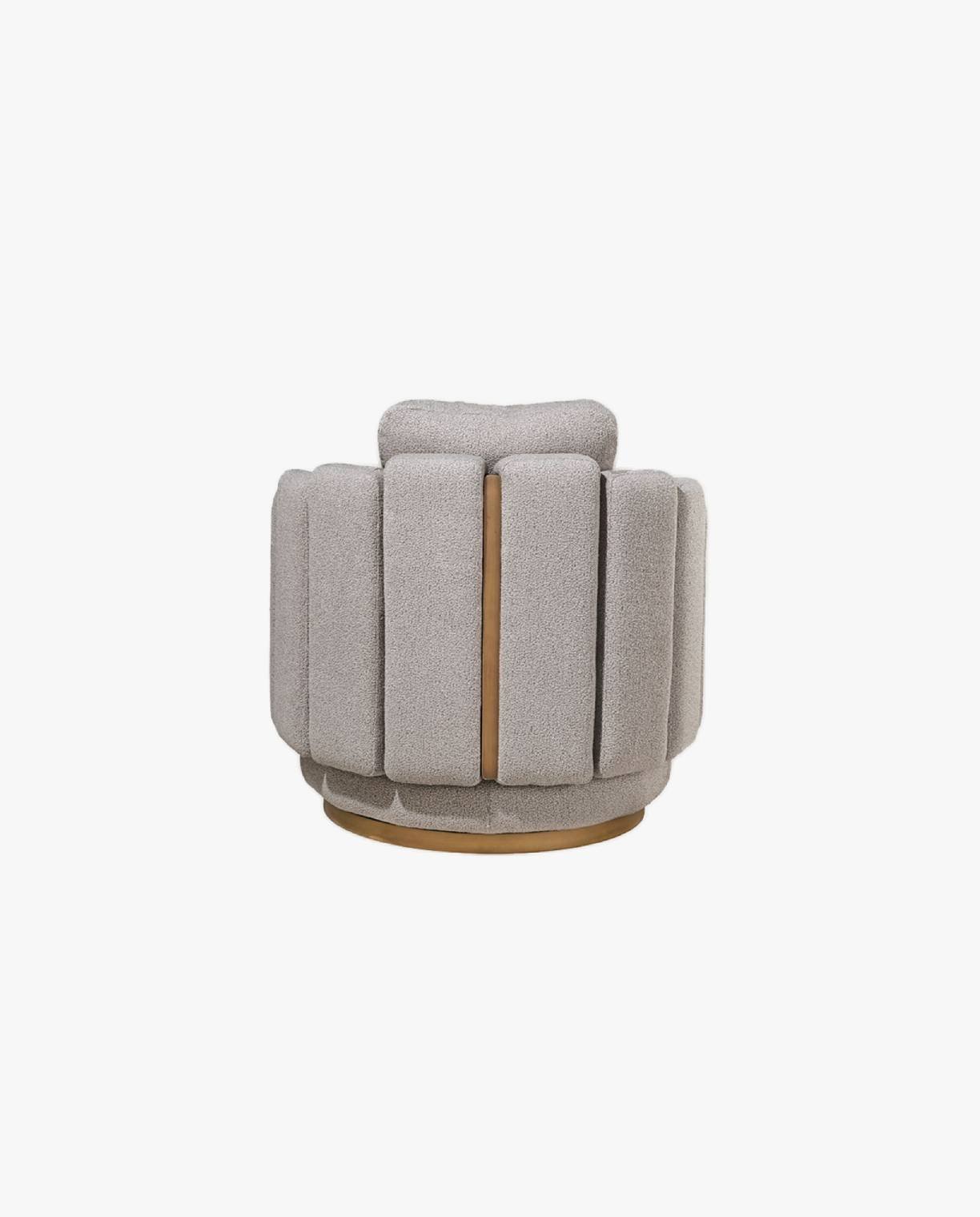 The CONTOUR armchair exudes contemporary sophistication with its distinctive swivel base and elegantly crafted backrest. The backrest design includes refined brass-colored painted details, adding a touch of opulence. This armchair also features a removable back cushion, enhancing both comfort and versatility. The CONTOUR armchair effortlessly blends modern style with luxurious details, making it a standout piece for any refined interior.