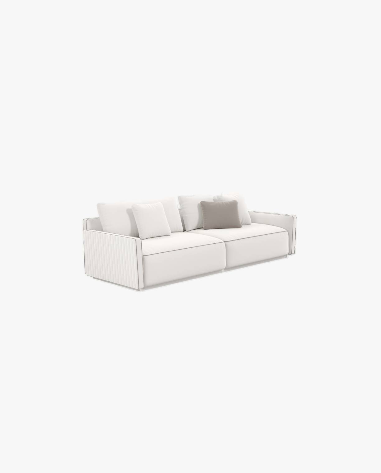 The DIONE sofa from Clove Design’s Essence Collection is a versatile modular piece designed to adapt to any living space. Available with seat widths of 100 cm or 120 cm, DIONE offers options for personalized comfort and fit. The sofa’s sides and back feature elegant quilted detailing, adding texture and depth to its clean lines, while the double piping in contrasting fabric along its edges highlights its sophisticated form.