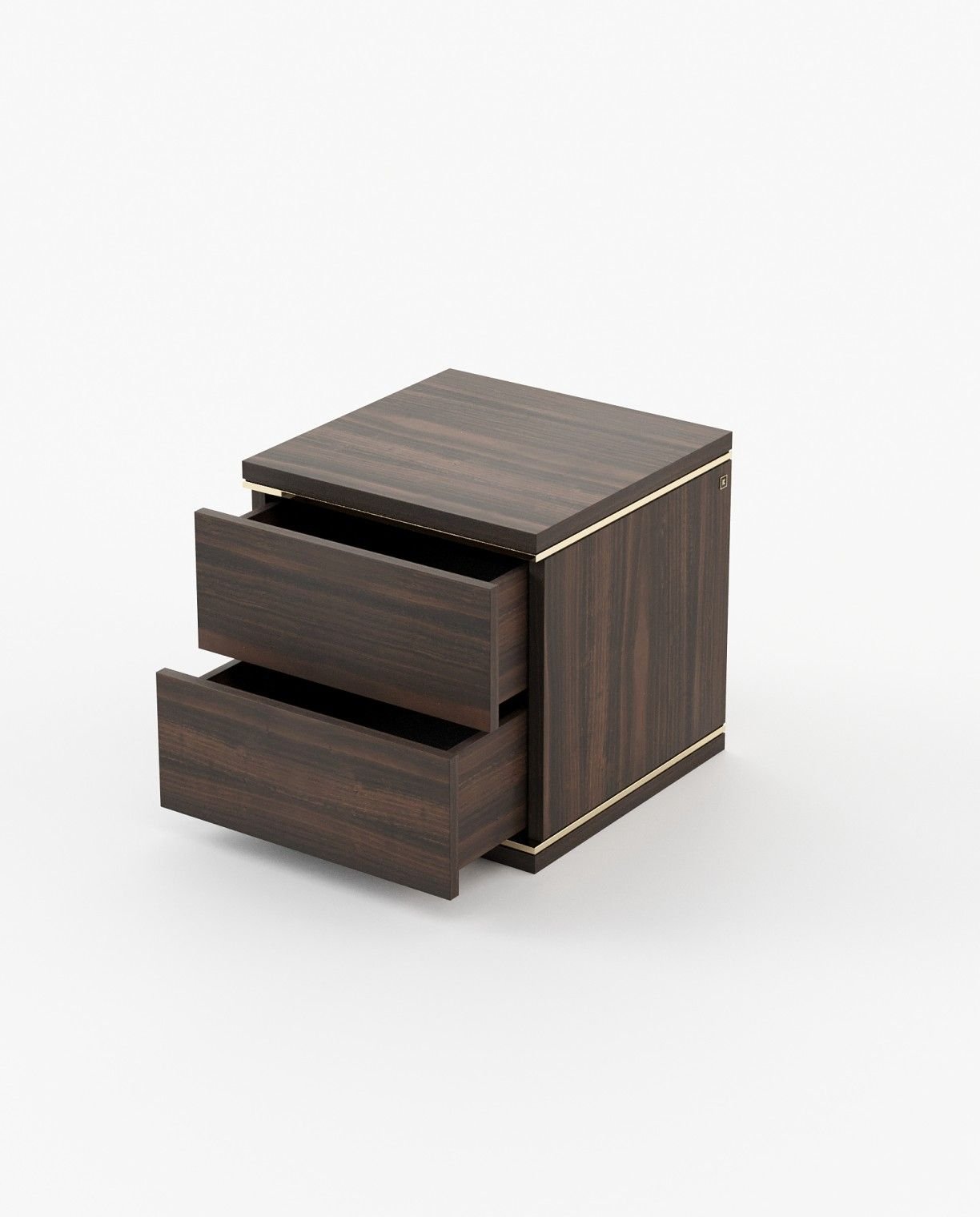 Duane bedside table is a wooden and metal bedside table designed to offer elegance and style to any bedroom. Featuring two handless soft-closing drawers and contrasting metal detailing, it will enhance the overall atmosphere of any bedroom set.