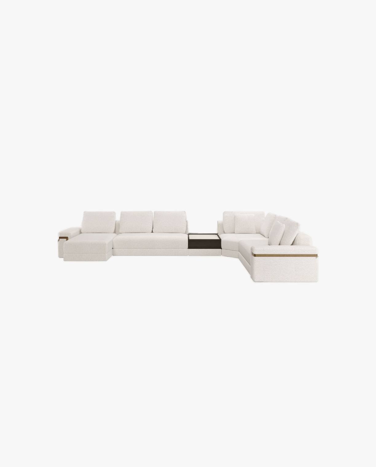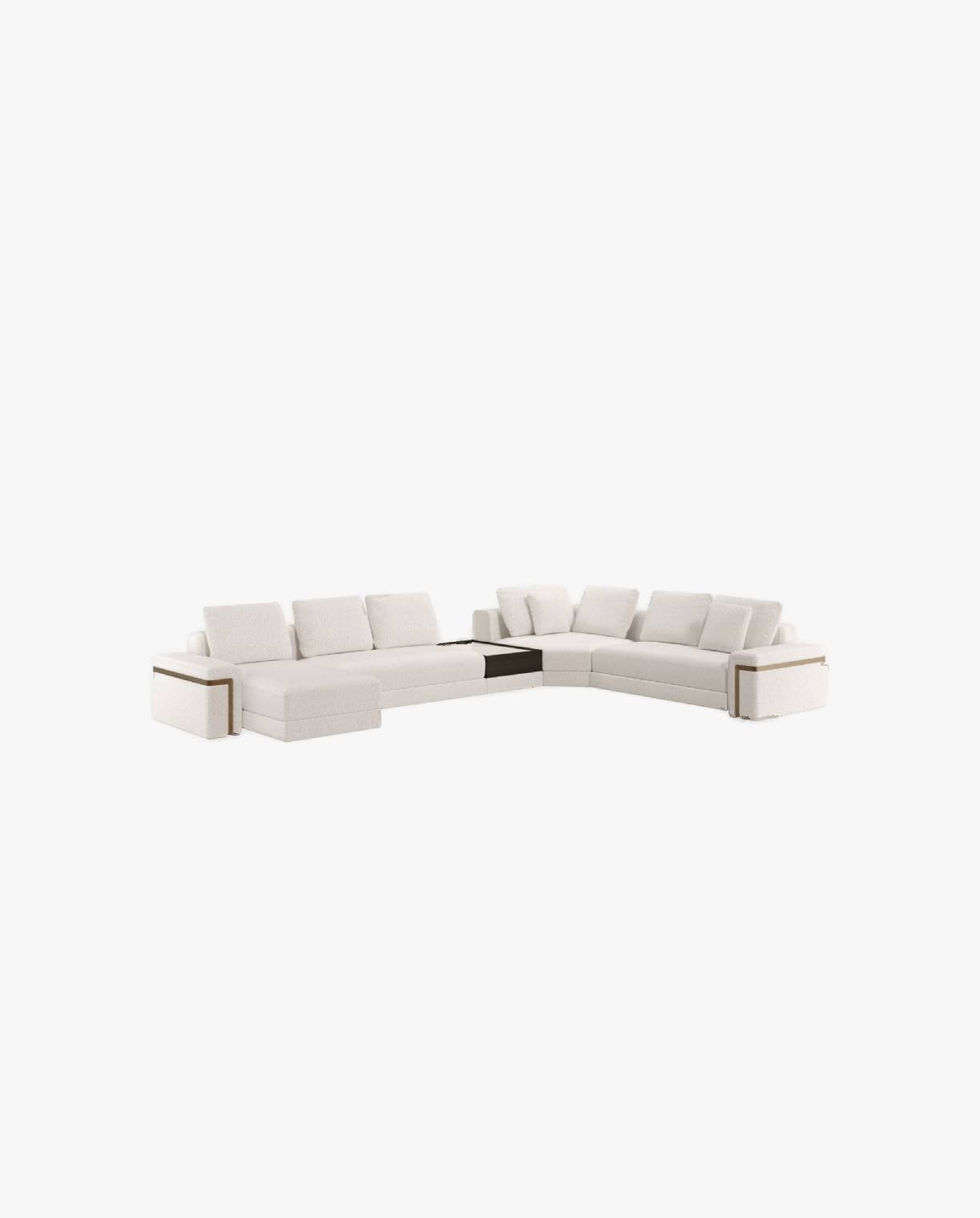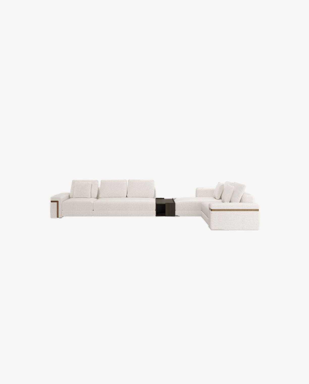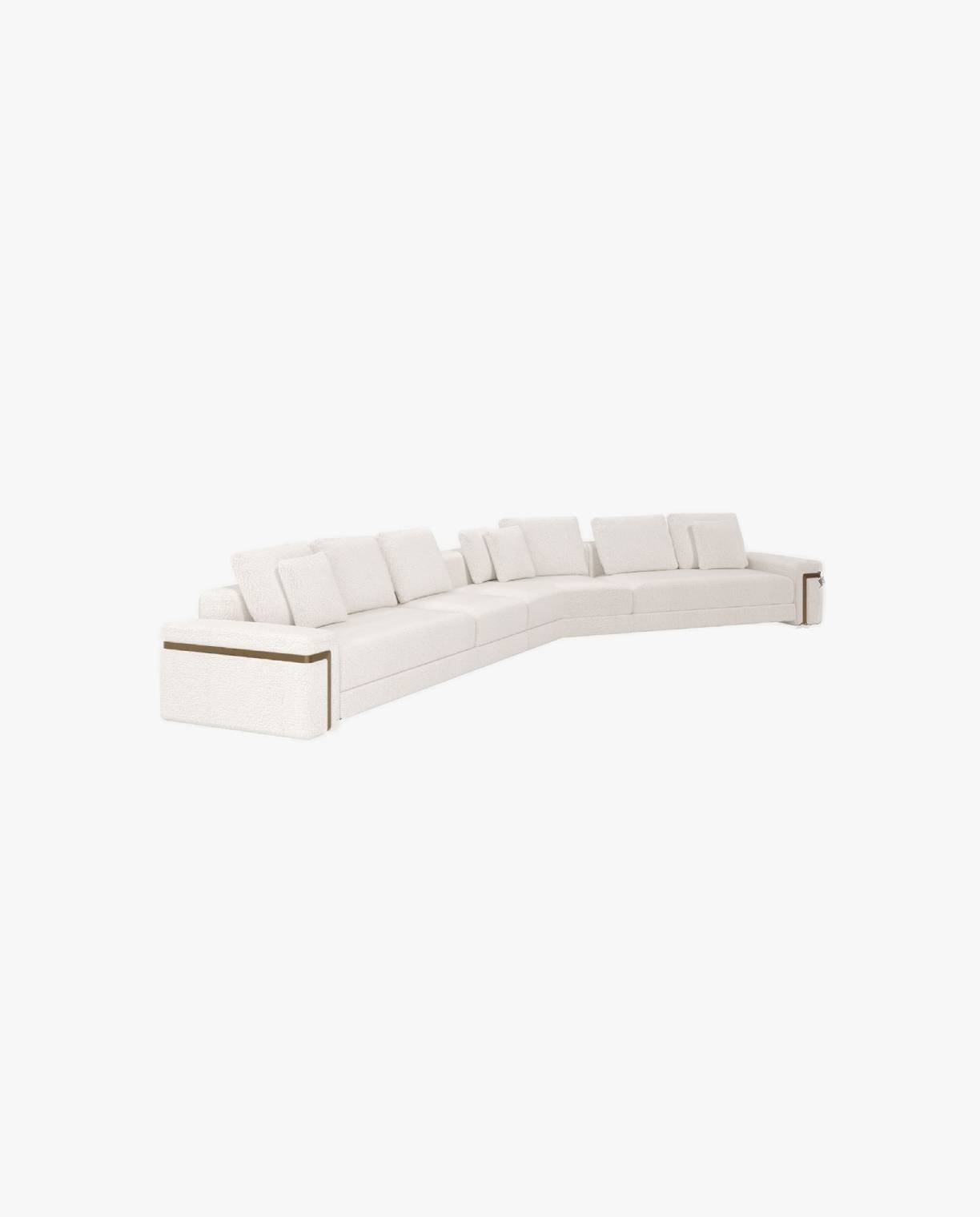 The GILD sofa embodies the refined beauty of organic shapes and luxurious comfort. With its generous proportions and soft, textured upholstery in a serene neutral tone, GILD brings a calming sophistication to any room. The sofa’s clean lines are accented by subtle, inset metallic details on the armrests, which add a touch of elegance without detracting from its minimalist design.