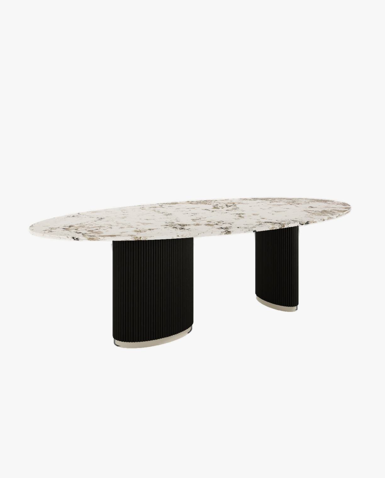 Graceful is a sophisticated and elegant dining table. A design where soft lines meet visually striking details. The beauty of the natural stone top and the natural wood ribbed legs make this piece a true work of art. Responding to the needs of each area, Graceful is available in two dimensions.