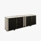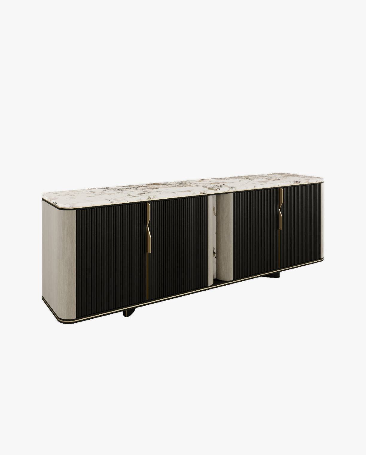 Harmony sideboard is the perfect balance between form and function. With its gently curved corners, natural stone top, fluted door fronts and contrasting shades of solid wood and veneer, it conveys a sense of serenity and elegance. A harmonious addition to any sophisticated environment.