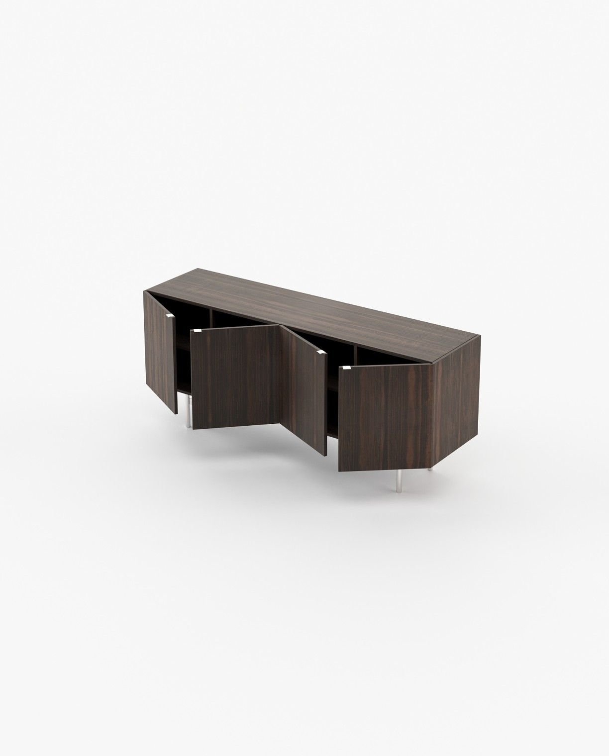 The Lewis modern sideboard is a contemporary piece characterised by its clean and straight lines. Handmade and fully customisable, it can be tailored in various materials, finishes, and dimensions to suit any interior design project, blending seamlessly into modern spaces.