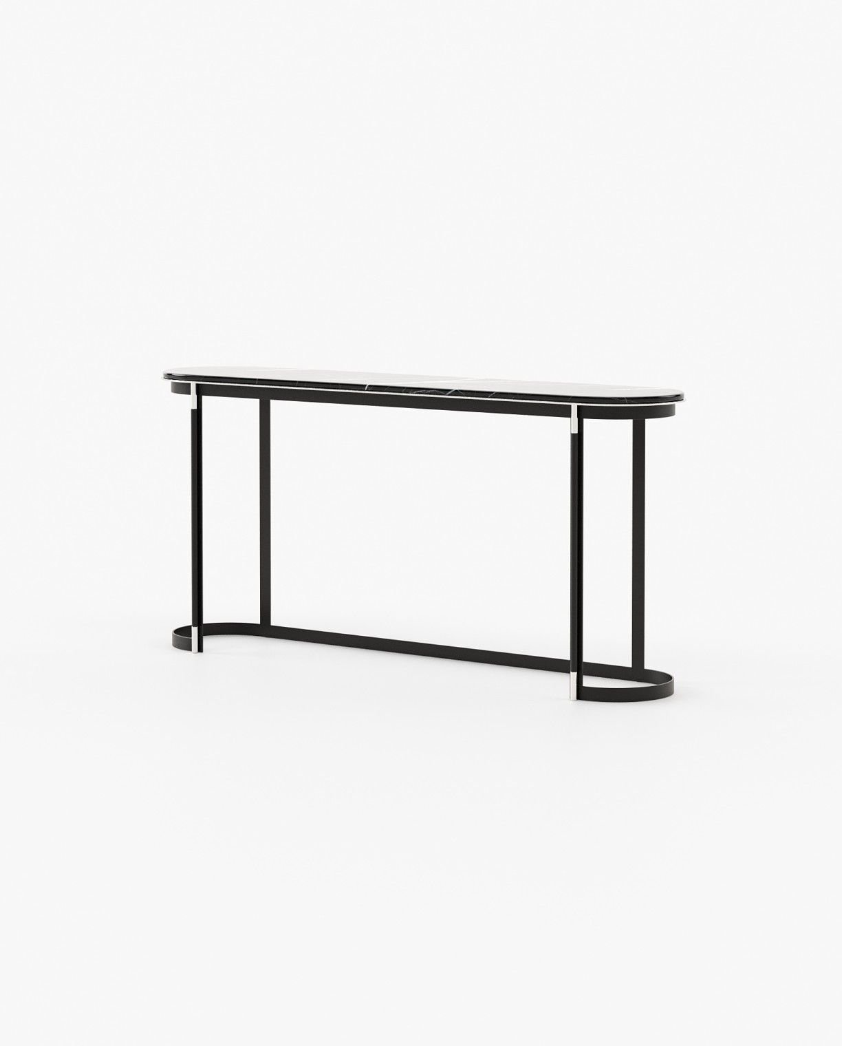 Lyssa is an iron console table that embodies the elegance of fine materials with a contemporary twist. Its iron structure contrasts beautifully with a wooden or marble top, creating an effortlessly sophisticated look. Perfect for charismatic entrance halls, the Lyssa console adds elegance and modernity to any space.