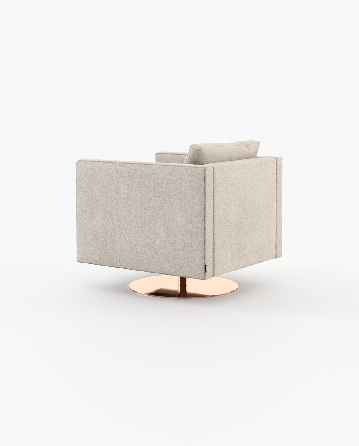 Marlow is an inviting armchair that appears to float above a slim metal base. It adds elegance to any room and is great for spinning around in.