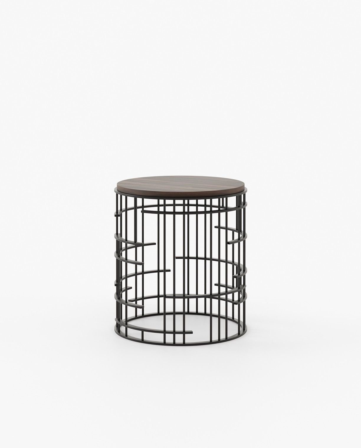 Mercy is a geometric side table with a round tabletop and asymmetrical metal structure. Its bold design and striking shape make it a standout piece in any contemporary living space.