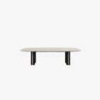The PIETRA dining table is a sophisticated piece that combines natural materials with a sleek design. Its tabletop, crafted from natural stone, features rounded corners for a softer silhouette. Each of the four cylindrical legs includes an inlaid stone detail and can be finished in either lacquer or solid wood, allowing for a personalized aesthetic. Available in two lengths, the PIETRA table embodies elegance and durability, making it a versatile choice for a refined dining experience.