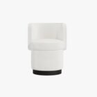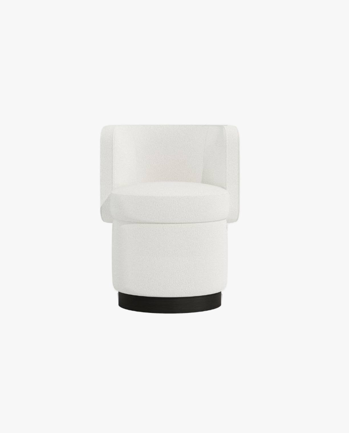The RHONDA chair combines elegance with a modern edge. Featuring a rounded backrest and a seat that flows seamlessly to the base, this chair showcases refined curves and smooth lines. The base can be customized in either a brass-colored finish or wood, enhancing its sophisticated yet versatile design.