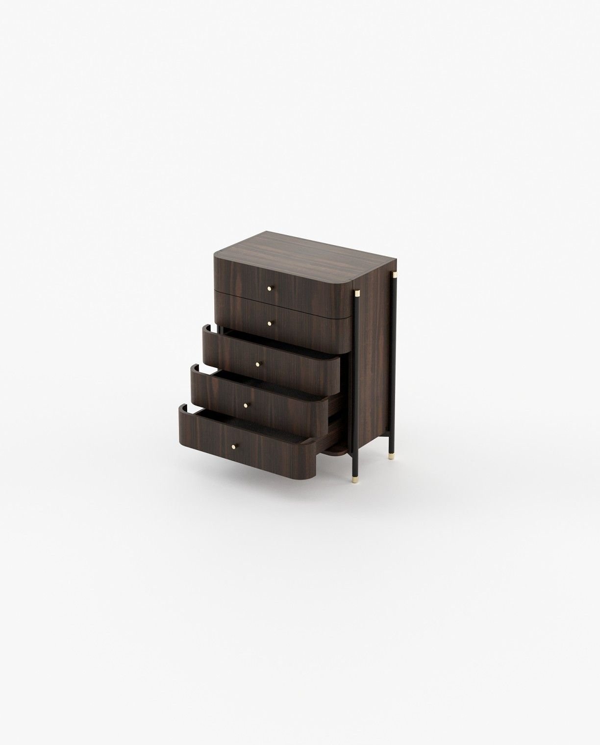 The Rosie Tallboy is a mid-century masterpiece featuring a vertical design with multiple drawers that provide maximum storage while occupying minimal space. Its elegant silhouette adds a stylish touch to any bedroom, seamlessly combining functionality and aesthetic appeal.