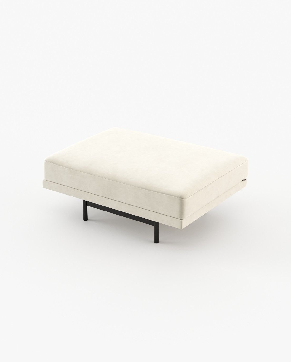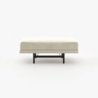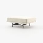 The Stewart pouf is a delicate upholstered piece for a master bedroom or living room, featuring a metallic structure and clean aesthetic, it is a complimentary item for any decor.